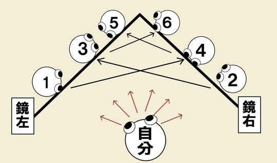 ④が鏡左に写ったのが⑤、③が鏡左に写ったのが⑥です。